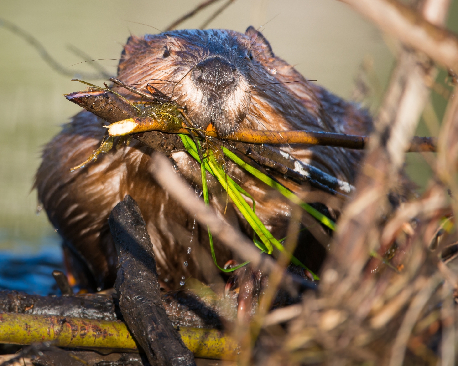 Le castor creuse souvent un terrier dans la berge, mais son secret est ailleurs : l'entrée est toujours immergée. Cela lui permet d'entrer et sortir sans être vu des prédateurs. À l'intérieur, le gîte est un modèle de propreté. Un premier niveau au ras de l'eau lui sert de "vestiaire" pour se sécher, tandis qu'un second niveau, tapissé de copeaux de bois frais, sert de nid douillet. Une cheminée de branchages assure même l'aération du gîte !